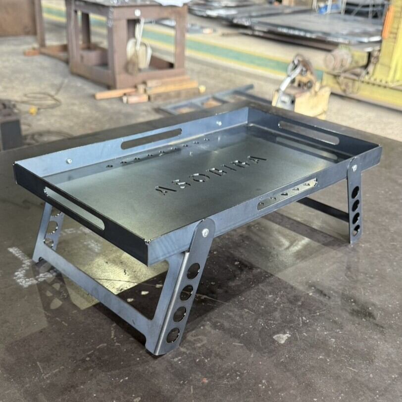鉄工所の技術を活かし、台と脚を“かしめ加工”でしっかり固定。