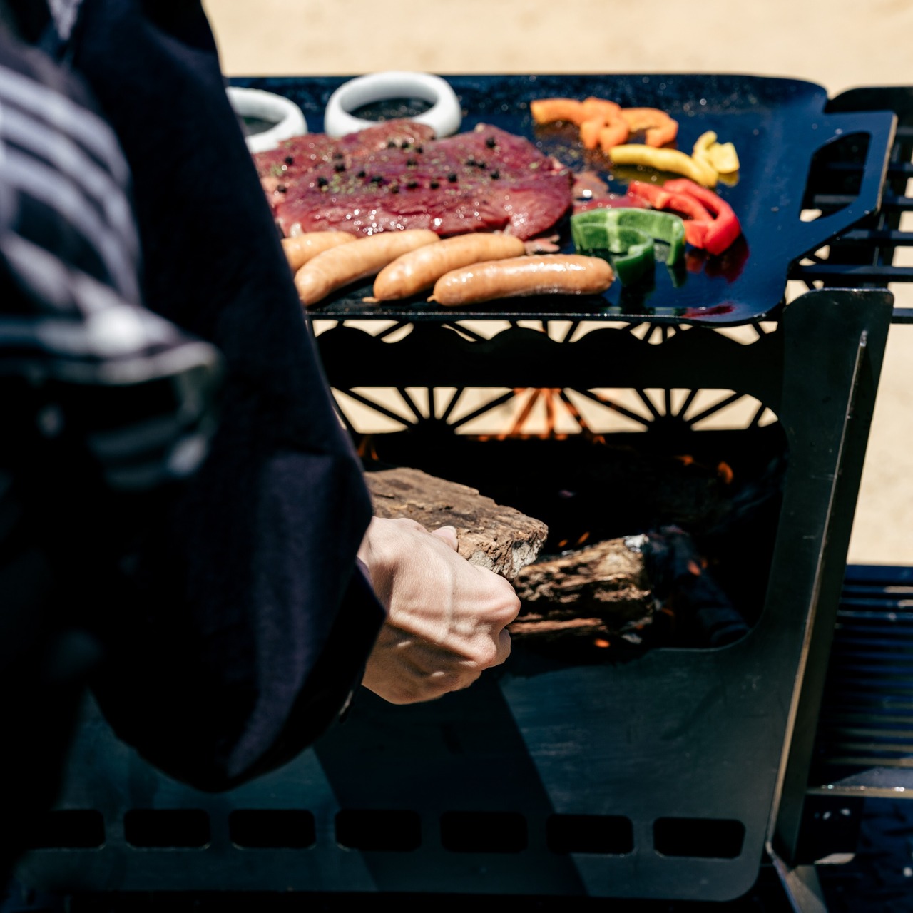 ロストルは長めに設計し、やかんやフライパンの一時的な置き場にもなります。薪の置き場にもなります。